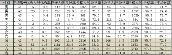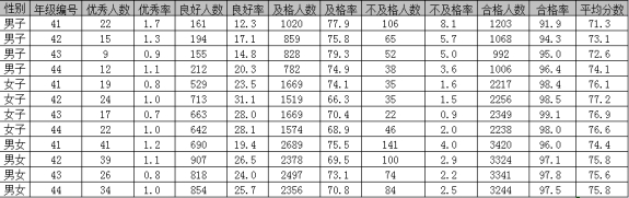 国家员工健康体质标准实施状况(10分) | 近三年实施《国家员工体质健康标准》测试率100%、及格率85%以上,并且每年已将测试数据上报教育部 | 10 | 10 |