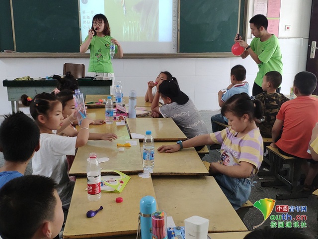 图为志愿者给孩子们讲解实验步骤。中国青年网通讯员付照湘摄