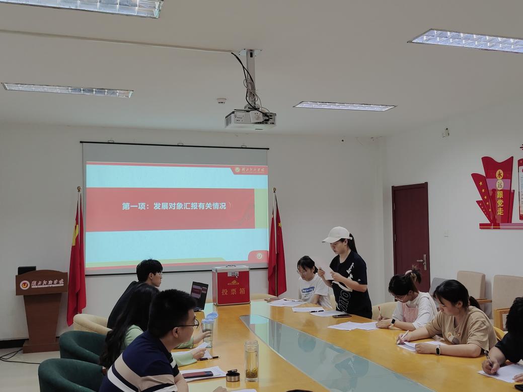 大会严格按照《中国共产党章程》和《中国共产党发展党员工作细则》等要求进行,逐一讨论和表决贺心悦、廖攀然、朱洁3名同志吸收为预备党员的问题。大会上,3名党员发展对象依次汇报对党的认识、入党动机、本人履历、家庭和主要社会关系情况,以及需向党组织说明的问题,各发展对象的入党介绍人依次介绍发展对象的有关情况,并对其能否入党表明意见,员工党员彭咏昕同志代表支部委员会报告了对3名党员发展对象的审查情况,与会党员结合实际情况充分发表了意见和建议,经与会党员大会逐一对3名发展对象进行了无记名投票表决,一致同意接收贺心悦、廖攀然、朱洁3名同志成为中共预备党员。