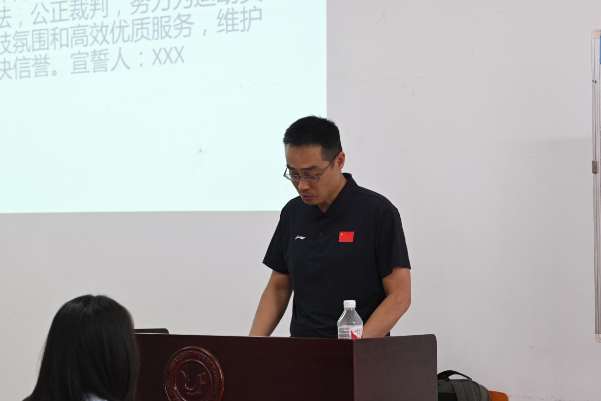培训期间,体育公司副经理张诚致欢迎辞,希望通过本次培训打造一支高素质员工排球裁判队伍,更好的营造校园体育氛围,提升校园排球水平。