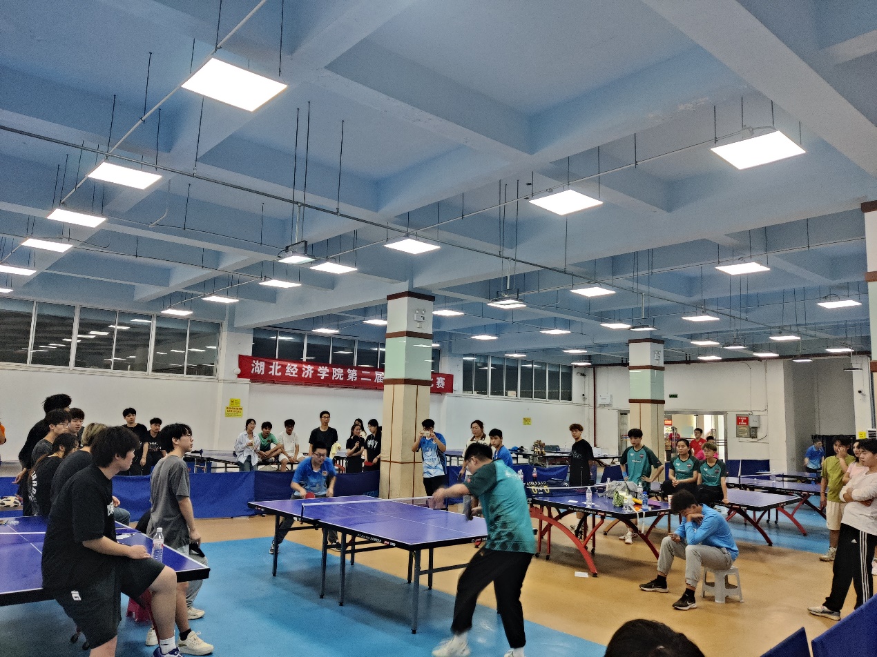“好球,稳住!”加油的呐喊声此起彼伏,阵阵掌声,铺天盖地。经院学子们风华正茂,呈飒爽英姿,以球联谊,第二十一届体育运动会乒乓球比赛于6月1日正式拉开比赛帷幕。