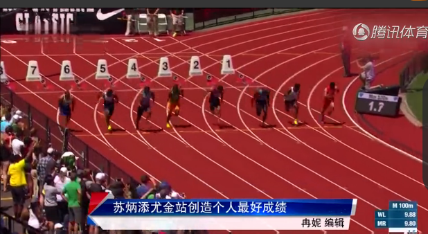 腾讯体育讯 北京时间5月28日,2017年国际田联尤金站男子100米比赛中,亚洲本土飞人苏炳添以9秒92的成绩获得亚军,但稍微有点遗憾的是比赛时风速达到顺风2.4米/秒,因此这个成绩未被国际田联官方认可。两年前苏炳添在尤金站以9秒99(+1.5米/秒)获得季军,成为第一位跑进10秒大关的亚洲本土飞人。美国选手布莱克-罗尼以9秒86获得冠军,英国的乌查以9秒95获得季军。