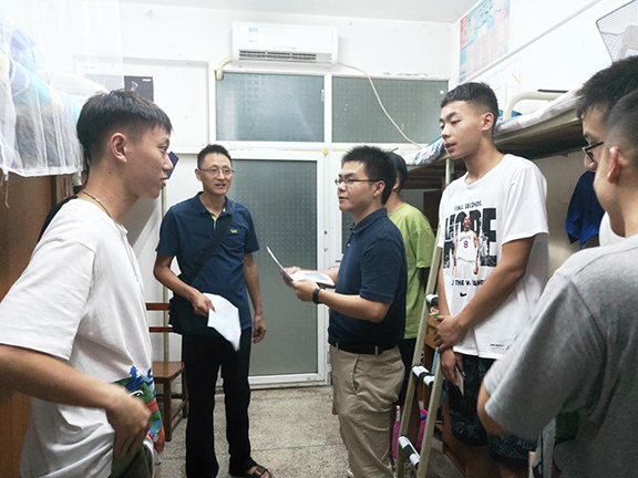 9月7日,新生报到第一天。你们拿着录取通知书在相应位置报到,带着大包小包的行李入住了即将生活4年的寝室,遇见了来自五湖四海的新室友,又到体育馆领取了军训的服装。你们是否还记得当时的自己是怀着怎样的一个心态,是对即将步入老员工活的欣喜,还是能够结交更多老师、同学的激动,亦或是踏入一个崭新的环境,离开父母的不舍?当天晚上,辅导员、班主任、员工党员和团学组织干部又来到你们每一个人的寝室,关心问候你们,从学习状态到生活起居。