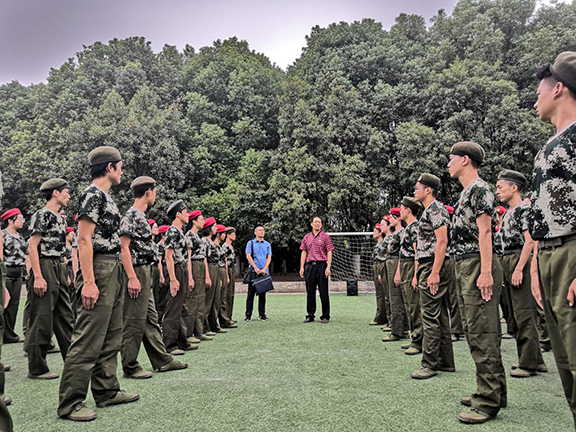 后期,你们开始了用汗水与欢笑浸泡的军训。阳光下,笔挺的军姿,整齐划一的齐步走,正步走,在这一时期恰逢中秋节,辅导员、班主任、团学组织的学长学姐与你们在BETWAY必威度过了第一个节假日。手机的闪光灯仿佛融入今晚的夜色中与空中的明月交相辉映,歌声、笑声、欢呼声在每个人的耳边此起彼伏,一直抵达今晚的月亮,载着厚重的思念也乘着美好的祝愿。这时,军训阶段已在不知不觉中走过了一半。在离军训回报演出越来越近的时候,公司党委书记王厚生与辅导员徐盛富老师来到你们的训练场地看望你们,并勉励你们“发挥体育人特长,展示体育公司风采。”