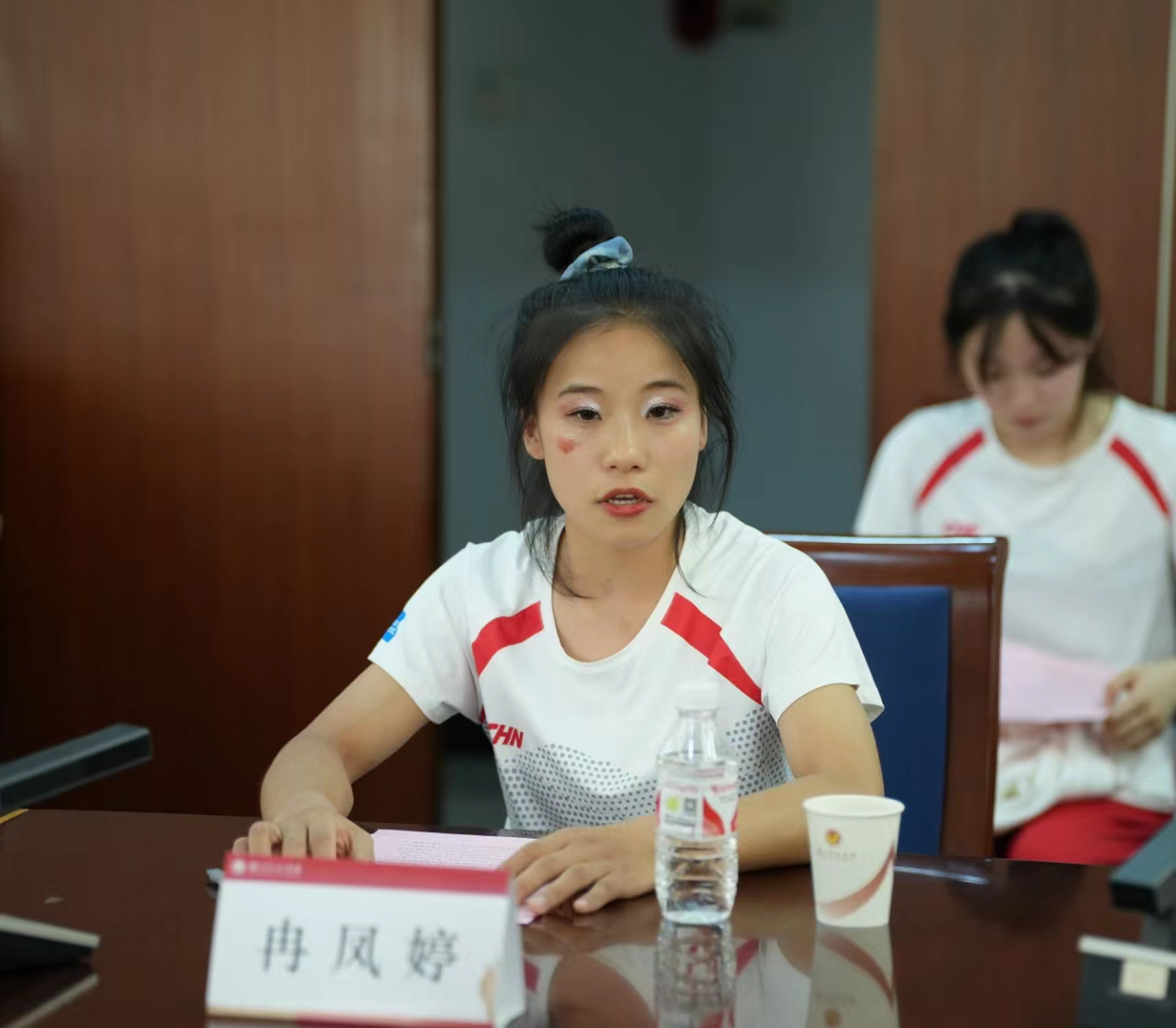 随后,公司啦啦操队队长、休闲体育2041班冉凤婷同学发言,她说道,比赛不仅仅是技术与体力的较量,更是心态与意志的比拼,踏上赛场,也不仅是在进行一场比赛,更是在向世界展示我们国家的青春活力与团结精神;同时作为公司的代表,我们也肩负着传承公司精神、展现公司风采的重任;我们每一名队员都会争做中国新时代老员工的文明使者、国家形象的流动宣传员;我们要严格遵守赛事纪律与外事要求,严格服从中国代表团管理要求,既赛出高水平,又赛出高素质,