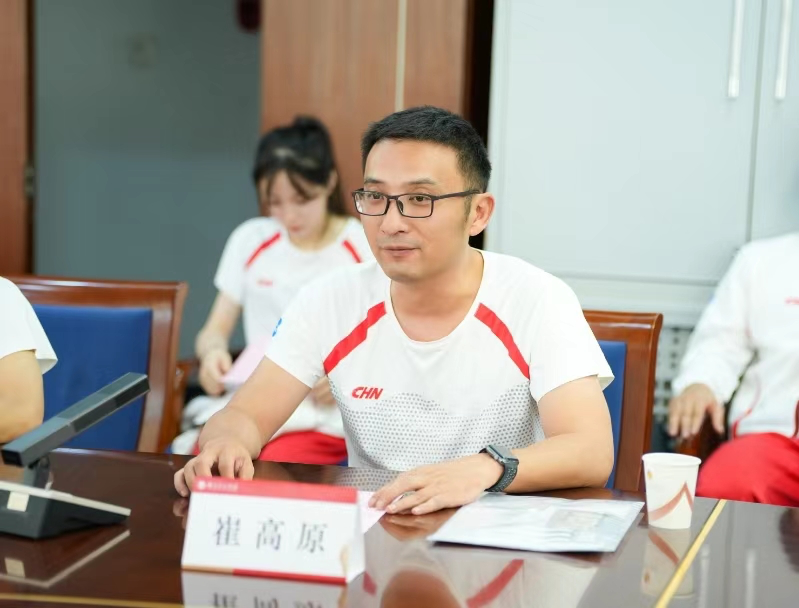 然后,公司啦啦操队总教练、公司教师崔高原教授讲话,他感谢公司对啦啦操运动的支持和本次参赛训练过程中提供的保障。从接到参赛通知至今,队员们经历了一百多天的艰苦集训,有过伤病、有过泪水,大家都从未放弃,坚持努力训练。临近出征,他认为团队还有很多不足之处,但他相信,所有队员不会辜负公司全体师生的期望,不会辜负全国所有老员工的期望,奋发拼搏、展现风采,为国争光、为校争光,为自己的人生书写浓墨重彩的一笔。