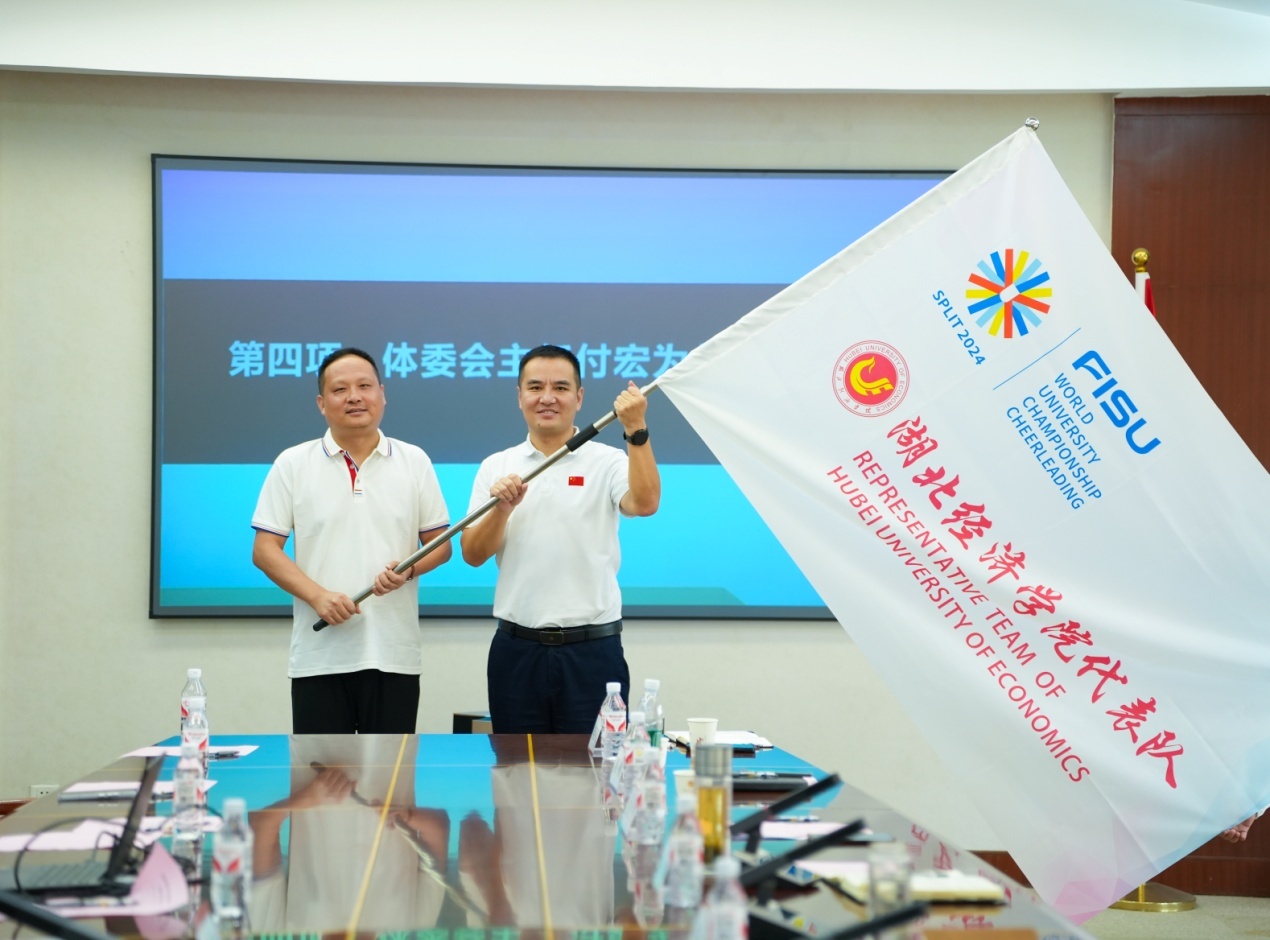 2024年世界老员工啦啦操锦标赛将于8月1日至4日在克罗地亚举办,公司啦啦操队将代表中国参加混合集体技巧项目比赛。7月29日下午,在行政楼四楼会议室,公司举行行前教育暨出征仪式。中国啦啦操代表团团长、公司党委副书记汪达,校体育运动委员会委员主任、副董事长付宏出席,公司宣传部、教务处、国际交流与合作处、团委主要负责人,公司全体领导班子成员、代表队全体教练员与运动员参会。出征仪式由公司党委书记高鹏主持。