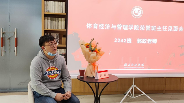 郭政为公司2016届体育经济与管理专业毕业生,当年就读上海体育公司体育管理学研究生,现任武汉迅博文体广告发展有限公司体育运营策划主管。郭政回顾自己的学习、工作经历,交流了专业学习的经验及学习规划建议,介绍了体育行业发展的发展前景。郭政勉励同学们要把大学当成锻炼能力的平台,明确目标、积极准备、积极进取、勇于突破,争做“三有三实”型人才。