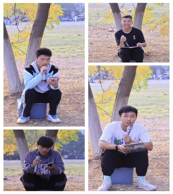 王家豪诵读了《国风·无衣》,与大家回顾了抗击新冠肺炎疫情中的温暖,希望大家珍惜同学情谊,凝聚奋进力量。韩岳洋诵读了李清照的《渔家傲》,他谈到,“生活也许是会在我们安逸之时给我们痛苦一击。但这首词却告诉我们,在经历人生苦困后,要不消沉,不认输。”王文峰诵读了曹植名句“惊风飘白日,光景迟西流”、晋代傅玄的“志士惜日短,愁人知夜长”,欧阳修的《生查子·元夕》,他希望大家一起争做志士、不做愁人,珍惜时间,做更有意义的事。潘自晨诵读了《苏幕遮·燎沉香》,他认为,体育生也可以心有猛虎,细嗅蔷薇,希望大家不仅有健硕的肌肉,也要有诗意的生活和善于发现美的眼睛。