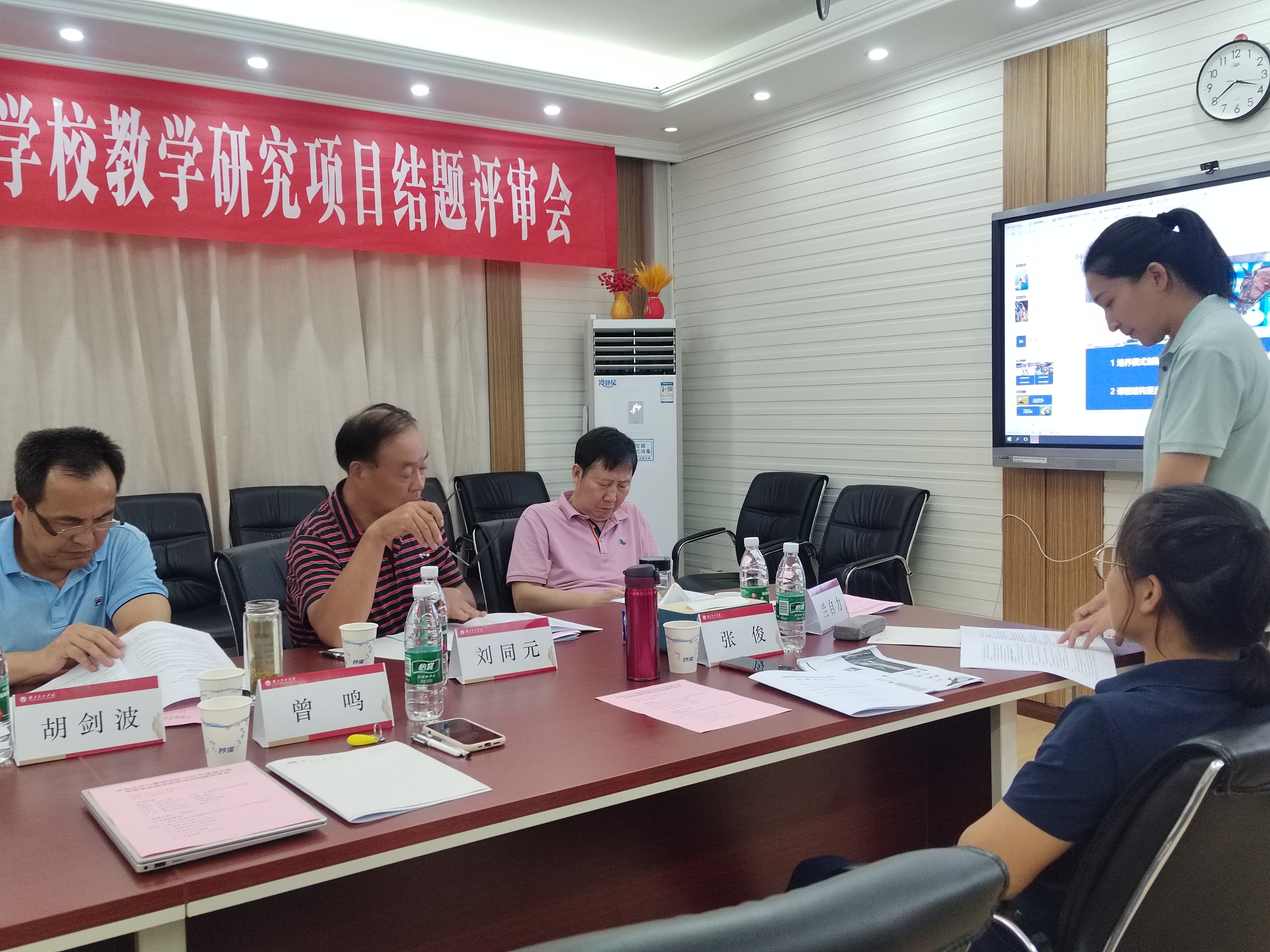 本次评审会由武汉大学胡剑波教授担任评审组长,武汉理工大学刘同员教授、湖北大学张春合教授,以及校内评审专家兰自力教授、孙辉教授参与结题评审。评审会由教学副经理李燕燕主持。曾鸣、张俊、宋丽霞三位教师代表课题组,依次通过PPT重点围绕课题研究思路、主要内容和研究成果进行了系统阐释。在听取汇报后,专家组对课题成果给予高度评价,并分别提出了相关建议。