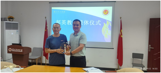 经理孙辉代表公司向郝教授赠送荣休纪念杯,青年教师代表郑芒芒向郝教授献上鲜花。
