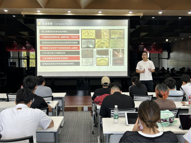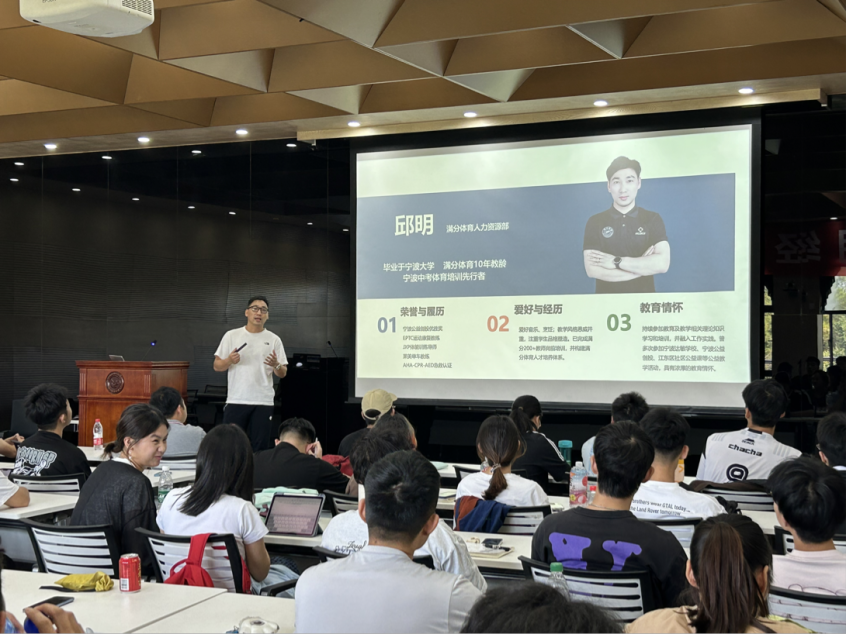 随后,满分体育公司人力资源部总监邱明通过播放公司宣传片、ppt展示以及面对面交流的方式向2025届毕业生们介绍其公司的概况、职业发展路径、人才培养体系以及招聘条件。让同学们了解到满分体育是一家培养优秀老师的公司。邱总监还为同学们讲解老员工职业规划历程,通过分享自己的职业成长经历帮助同学们明确就业方向和职业规划。最后,邱总监向同学们提出一定要不断提升自身认知,要勇于试错、尝试,认知越高,你的能力就越强。