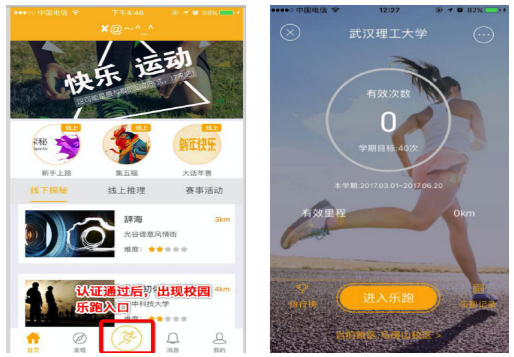 (1)员工认证通过后,会在软件界面开启“校园乐跑”功能入口,从该入口