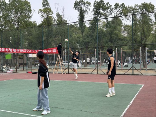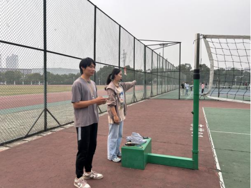 本次排球联赛吸引了来自2023级、2024级共六个班级的积极参与,各班级排球爱好者们踊跃报名,齐聚赛场。2023 级辅导员李雪晴老师以及2024级辅导员徐盛富老师也亲临现场观赛,为同学们加油助威。为确保比赛公平、公正且顺利地进行,此次排球比赛裁判员由2024级两位排球高水平运动员担任。