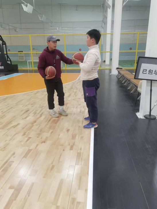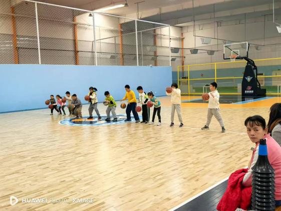 待学员们活动开身体后教练员通过绕八运球、左右换手拍球、一分钟背手拍球等动作让学员们在练习中掌握球感学会控制球的运动轨迹及方向。