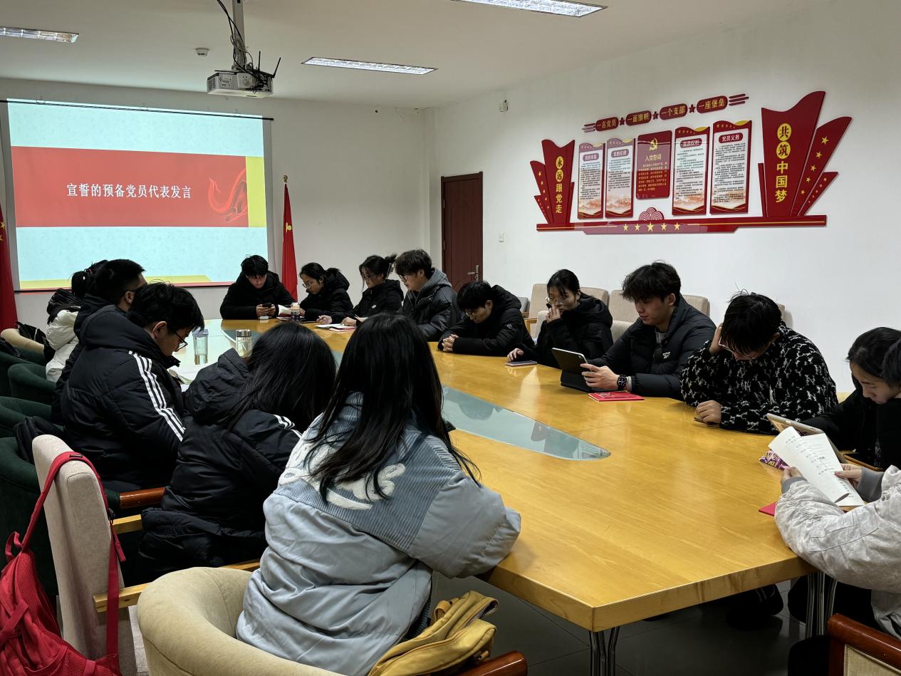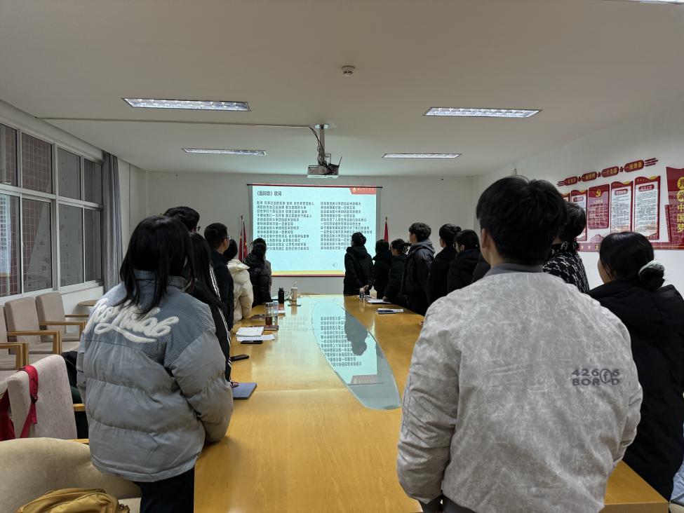 宣誓结束后,郑毅同志作为新发展党员代表发言。他号召大家借青春之光,永葆“赶考"的清醒与坚定,以一片赤诚之心向党献礼,把入党宣誓,内化于心、外化于行,争取以实际行动践行经院“三有三实”人才培养目标,不负青春,勇担时代大任。为全面建设社会主义现代化强国,推进中华民族伟大复兴做出贡献。