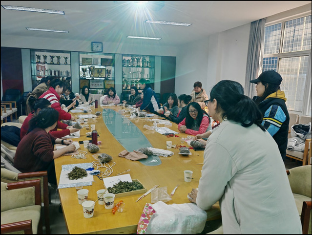 (本网讯)3月6日下午,公司举办了“艾护健康、乐享芳华”“三八”妇女节文化活动,全体女教工参加,由2007届员工石慧女士赞助支持,指导教工们制作艾草养生锤。活动中,石慧讲解了艾草珍贵的养生功效,蕲艾的特色与日常生活应用,指导大家辨别不同年份的艾草。随后,指导大家现场制作爱心艾草锤。大家充分利用现场提供的材料,认真按照操作步骤,兴致盎然地制作,很快一个个精致可爱的艾草锤完工。大家相互展示,乐在其中。石慧讲解并示范了艾草锤的使用方法,大家现场运用,气氛热烈。最后,石慧还给每位女教工准备了艾灸贴、艾眼罩、艾草足浴包等礼物。