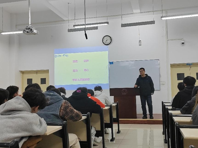 备考规划环节,老师详细讲解考研流程,针对英语、政治及专业课,给出备考策略与学习方法,如英语词汇积累法、政治复习重点梳理、专业课资料获取建议等。同学们积极互动提问,老师耐心解答,大家对考研有了更清晰认识,备考信心大增。
