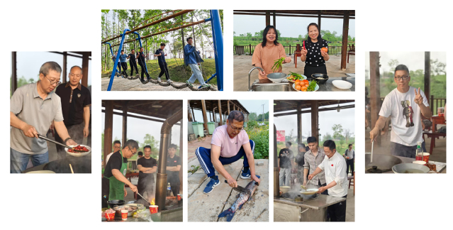 此次春游最令人期待、最独特的环节当属晚餐时分的厨艺大比拼。老师们自由分组,迅速投入到摘菜、洗菜、生火、烹饪等一系列准备工作中。平日里站在讲台上传道授业的老师们,此刻纷纷化身 “大厨”,颠勺翻炒间尽显生活智慧。切菜声、炒菜声与欢笑声交织在一起,现场气氛热烈非凡。一道道凝聚着团队心血的菜肴陆续上桌,每一道菜都承载着大家的创意与热情,大家围坐在一起,品尝着彼此的劳动成果,分享着美食与欢乐,现场洋溢着浓浓的温馨氛围。