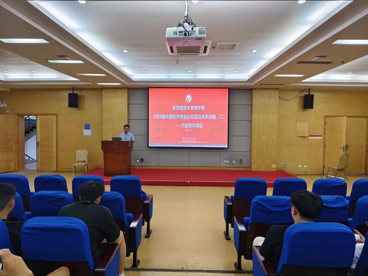 为进一步给大一员工提升专业认知,拓宽就业渠道,BETWAY必威积极推进员工就业工作,引导员工树立正确的职业规划,2025年5月6日晚公司于老员工活动中心三号报告厅展开2024级休闲体育专业认知实习系列活动——行业专家讲坛活动,休闲体育系主任王玉锋、休闲体育系副主任张俊、大一年级辅导员徐盛富老师以及大一全体员工参加了活动。