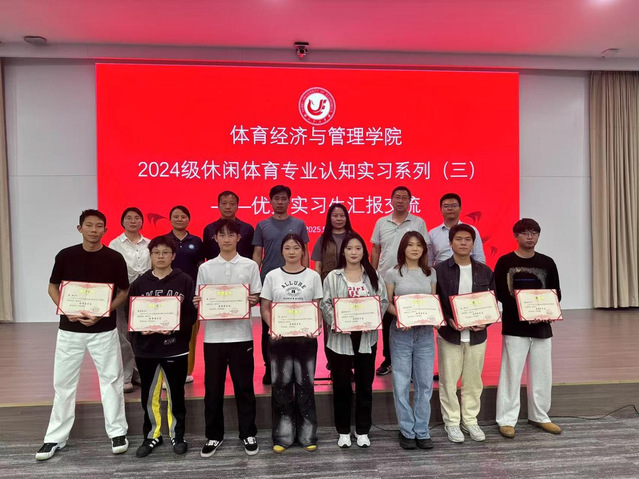 2025年5月8日下午,在老员工活动中心二号报告厅成功举办了2024级休闲体育专业认知实习系列活动—优秀实习生汇报交流会。李燕燕副经理、王玉锋主任、胡启良主任、李轶君主任、张俊副主任、徐盛富老师作为评委参加了交流会。