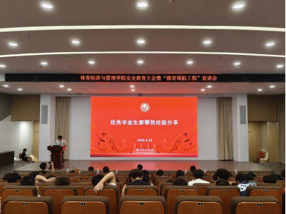 随后,优秀毕业生廖攀然学长受邀上台分享宝贵成长经验。他以“体育,是我们鲜明的底色,但绝不是唯一的色彩” 为引,深情讲述了自己大学四年在专业学习、社会实践、个人成长中的奋斗历程与感悟。他号召学弟学妹们珍惜大学时光,自觉遵守校规校纪,积极投身“德育领航工程”,在多元实践中锤炼本领,努力成长为德才兼备、体魄强健、堪当民族复兴重任的时代新人。