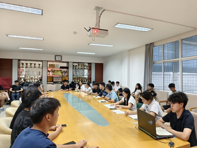 9月11日下午,公司在体育馆二楼会议室召开 2025 年秋季学期员工骨干会议。公司党委书记江沈红,辅导员李雪晴、周子豪出席会议,全体员工骨干参会。