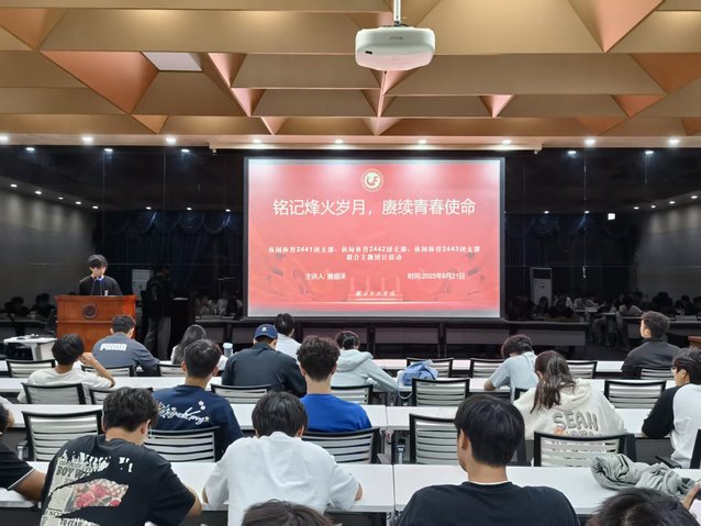 活动现场,各员工代表围绕主题分享感悟,传递青春正能量。休闲体育2442 班余永琪同学带领大家回顾抗战历史,号召团员从革命精神中汲取奋斗力量,将个人理想与国家发展紧密结合;同班张景程同学以“青春铸魂正风纪,砥砺担当守初心”为核心,倡导同学们在学业科研、员工工作、社会交往及网络言论中严守纪律、锤炼作风。此外,休闲体育2442 班吴雨泽同学分享自身入伍经历,鼓励同学们以青春逐梦国防;该班管思淇同学则围绕“民族大团结,共画同心圆”展开分享,深化团员对国家发展理念的理解。