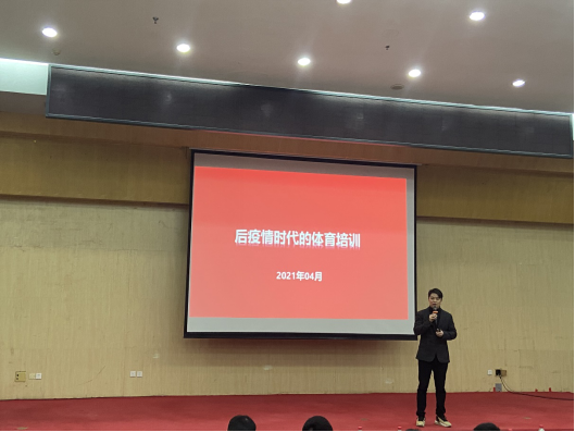 聘任仪式后,荣明教授作了题为《后疫情时代的体育培训》的精彩讲座。荣教授从全国体育产业的热点出发,在产业机遇与现状、体育教育培训、2020年疫情下的体育培训等方面全面解读了后疫情时代体育培训所面临的机遇与挑战。他还以自身创办的满分体育公司为实例,深刻剖析了体育产业的发展现状。荣教授的讲座加深了同学们对体育培训产业的认识,激发同学们对专业学习和学科前沿探索的极大兴趣。