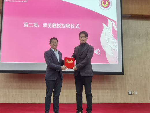 本网讯(通讯员 孙锐)4月1日下午,宁波大学体育公司硕士生导师、宁波体育产业联合会秘书长荣明受聘为公司客座教授聘任仪式在老员工活动中心二号报告厅隆重举行。公司党委书记王友刚以及公司师生代表参加聘任仪式,副经理孙立海主持本次活动。王书记对荣明教授表示热烈的欢迎和衷心感谢,并为荣教授颁发客座教授聘书。