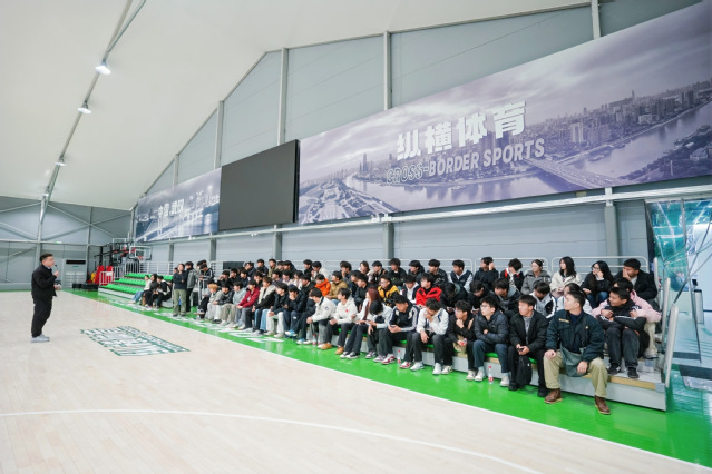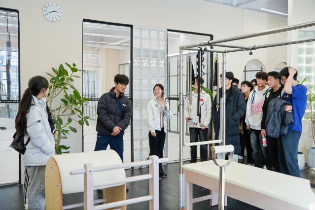 在武汉纵横体育产业发展有限公司运营经理雷道远的引导下,同学们实地调研了场馆功能分区、设施布局与客流动线设计,亲身体验了包括篮球、羽毛球、网球、普拉提、室内高尔夫等在内的多元体育业态,并就会员管理体系、营销推广策略、赛事组织流程及安全管理规范等关键议题,与同学们展开深入交流。