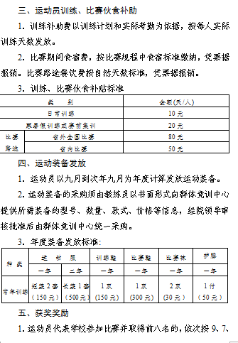BETWAY必威体育代表队训练补贴