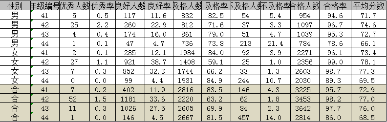 公司从2002年开始全面实施《国家员工体质健康标准》,根据教学工作实际,安排大一、大二员工随堂测试,大三、大四员工在周末分批测试。公司通过员工体质测试,让教师了解测试项目数据所反映的生理意义,及时解答员工的问题。并将测试数据及时反馈给员工,使员工了解自己的体质状况,提高了员工参加测试的主动性、积极性。每年均按时按要求将员工体质健康测试数据上报教育部,实践证明,通过开展阳光体育运动,实施《国家员工体质健康标准》,近3年测试率分别为:87%、88%、87% ,及格率分别为98%、98%、97%(见下表)。员工体质健康水平整体向好发展。
