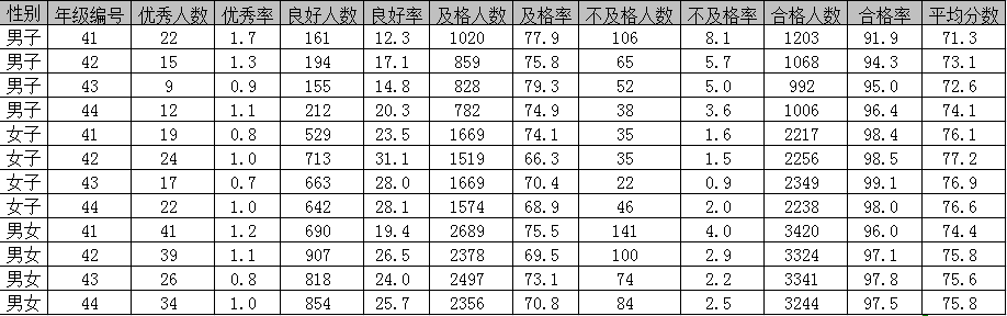2017年BETWAY必威《国家员工体质健康标准》统计表