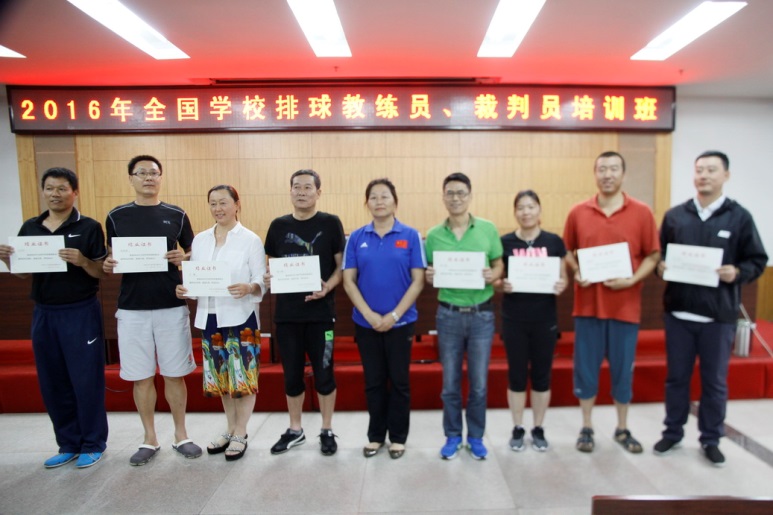 7月26日,为期4天的“2016年全国公司排球教练员、裁判员培训班”在美丽的“塞外江南”宁夏银川圆满结束。当天下午,本次培训活动管委会举行了庄重的结业仪式,由管委会主任赵青、副主任张锦文、授课专家孟光云和著名沙排运动员田佳向参加培训的80多名学员颁发了结业证书。