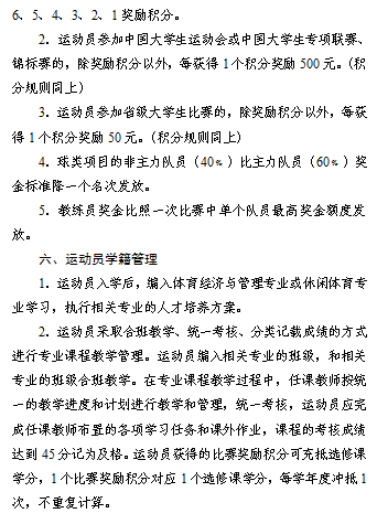 教学与训练效果(50分) | 教学效果 | 高水平运动员遵守校纪校规,学习认真、作风良好,在公司中享有很好的声誉,获得各种奖项(优秀员工奖、体育道德风尚奖、奖学金等);高水平运动员达到95%的毕业率、85%学士学位获得率;有保送研究生的相关办法并能达到一定升学比例。 | 5 | 5 |