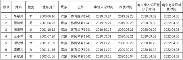 我支部拟于近期召开支部大会,讨论接收以下同志为中共预备党员(如下表所示)
