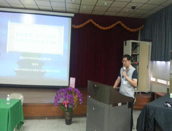 本网讯 5月6日至12日,公司休闲体育系副教授胡启良老师赴台湾参加了由真理大学台南校区承办的2015年海峡两岸运动休闲与健康学术研讨会,胡启良副教授的学术论文《我国普通高校不同师生群体体育休闲模式探析》被大会录用,并在分会场做了论文报告。