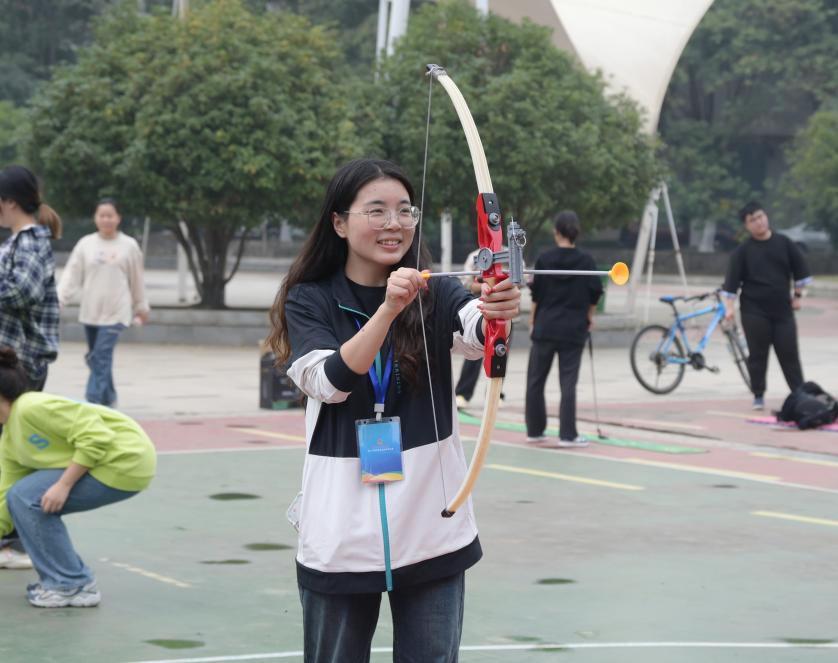 据悉,今年休闲体育游园会活动围绕休闲体育项目推广、户外休闲运动体验、体育文化传播等,更加注重项目设置的参与性、体验性、互动性,创新性的引入了“高尔夫”“射箭”“飞盘”等热门户外休闲体育项目,点燃经院学子参与体育活动的热情。
