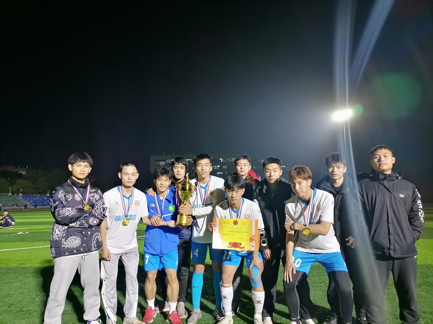 比赛伊始,“财经法”联合队率先得到一分。但公司球员们并没有气馁,在教练的指导部署下,积极跑位,不断传球进攻,寻找机会。在上半场即将结束时,公司球员谢咏健在队友的传球下,一记侧边打门,球进了,上半场比分追平11。下半场联合队的防守更加严密,但公司球员以更加积极更加迅猛地进攻不断威胁对方球门。不断地打门使机会又一次出现,吕小武占据有利位置快速过人,大力一脚,球再一次进了,比分21。在比赛剩余的时间内,公司积极防守,最终以21的比分夺得冠军。