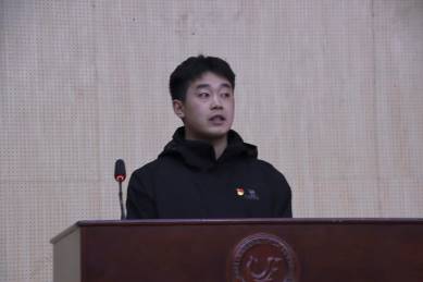 会议第三项,由“青马工程”藏龙班三期学员、休体2142班周诗博作主题分享。