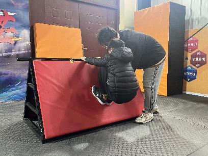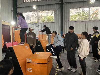 学员们掌握这些基础动作后,教练员们带领大家进行跑酷比赛,赛道由教练员们根据教学内容、学员基础精心设计而成。依托跑酷动作模式,通过栏杆、高台等模拟障碍,把金刚跳、助跑钻栏杆、猫挂等基础动作融入趣味性强的训练中,引导学员们用最快的方式穿越一道道障碍,克服眼前的困难到达终点。