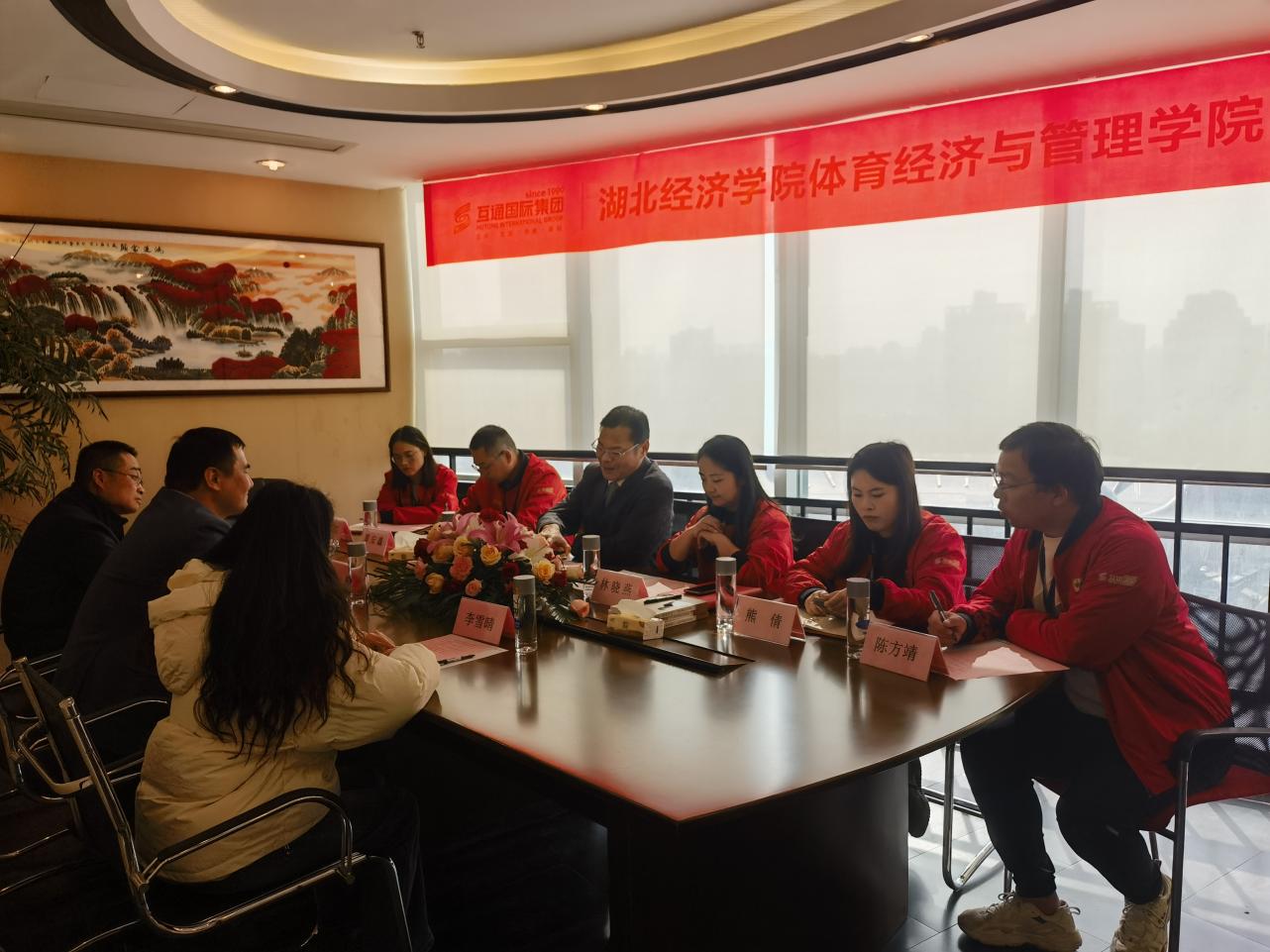 孙辉经理介绍了公司休闲体育国家一流专业建设情况,就双方建设好实习实训与促进公司老员工就业等方面进行了交流,对双方深入展开校企合作表达了期待,对湖北互通全马体育科技有限公司信任表示感谢,并就公司水上实训基地、马拉松赛事策划、实习生日常管理等进行了充分沟通和探讨。