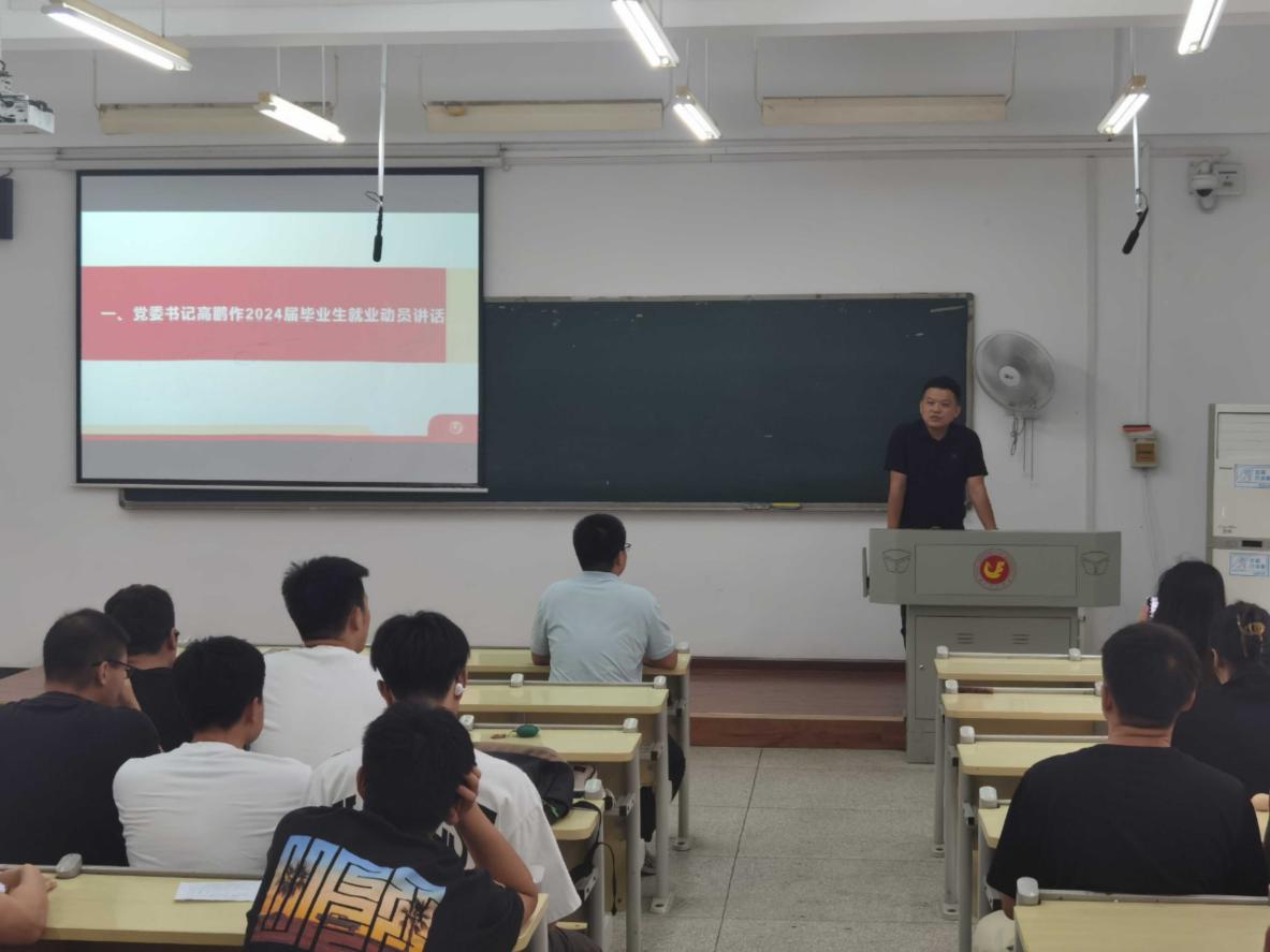(本网讯)为切实做好公司毕业生就业工作,助力毕业生更充分更高质量就业,9月26日下午,公司在教二212教室召开了2023届毕业生就业工作总结暨2024届毕业生就业动员大会,公司党委书记高鹏、全体辅导员和2024届毕业生参加此次会议,毕业生辅导员徐盛富主持会议。