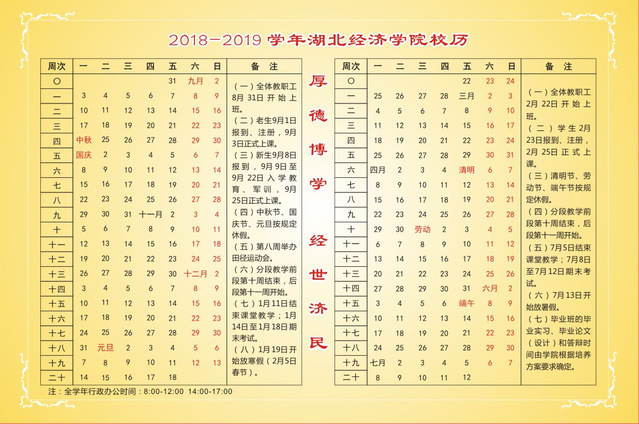 2018-2019学年BETWAY必威校历
