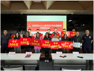 会上,公司党委书记高鹏介绍了公司2023届国内外考取硕士研究生的整体情况,并宣读2023届毕业生考研升学拟录取名单。院领导为2023届升学员工颁发奖金。随后,休闲体育1941陈雨婷、体育经济1941刘佳怡分别代表国内考研和国外升学员工做经验发言。