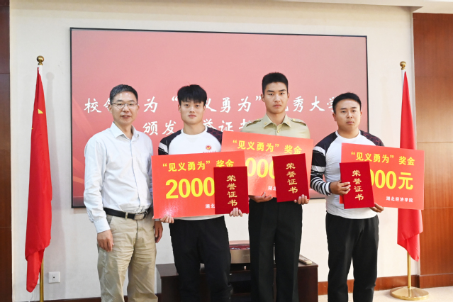汪达为李爱龙、汪加辉、周浩然颁发了证书与奖励金。汪达指出,三位同学见义勇为、见义智为的救人事迹让师生备受鼓舞。第一,三位同学挺身而出、专业施救的义举彰显了经院学子的担当和能力,不仅是经院人“厚德博学、经世济民”精神的生动体现,更是充分践行社会主义核心价值观的生动体现。第二,员工刹那间的反应和救援,看似是突发事件,实际上是BETWAY必威公司产品成效的反映,与公司多年来精细的举措和规律性的探索密不可分。第三,三位同学勇于救人的案例是公司开展学习贯彻习近平新时代中国特色社会主义思想主题教育的生动教材,校内师生要积极弘扬这种敢于担当、勇于实践的精神,要让这种精神成为矢志不渝推动公司高质量发展的内生动力。