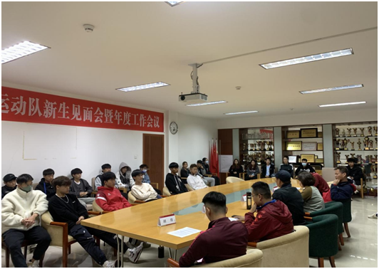王老师首先为大家依次介绍2022级9名高水平运动员新同学,对新生加入经院高水平大家庭表示热烈欢迎。足球高水平运动队主教练张诚、排球高水平运动队主教练王义平、田径高水平运动队主教练付杰依次分别就去年各运动队的训练、竞赛情况向大家进行介绍,并重点对各运动队2022年湖北省第十六届运动会备战、参赛情况进行了系统总结。在今年的省运会中,三支队伍克服疫情期间集训与参赛的各种不便,刻苦努力,顽强拼搏,取得了女子乙组400米栏第一名、女排第三名,男足5人制第六名等优秀成绩。随后,三位主教练正式向刘子豪、牛希凤、杨紫瑞三名优秀的运动员颁发了队长聘书,以满满的仪式感激发全体高水平运动队的荣誉感、责任感。