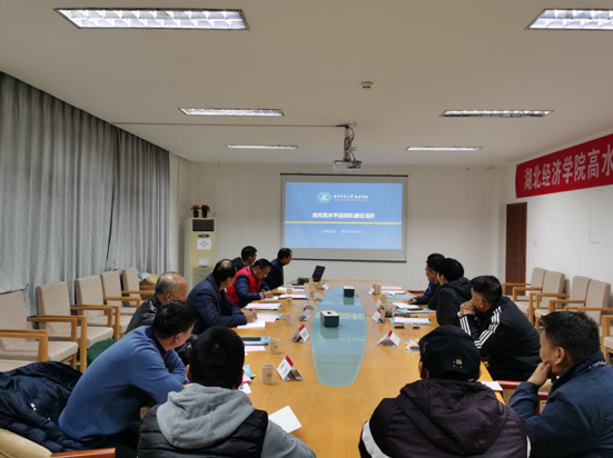 (本网讯)12月4日,高水平运动队建设研讨会在公司会议室召开。湖北省体育局一级巡视员、湖北省足协主席章进、华中科技大学体育公司经理孙竞波教授、湖北省老员工体育协会足球分会秘书长陈汉华教授、武汉体育公司足球公司经理刘晓宇教授、湖北省老员工体育协会足球分会副秘书长熊伟教授等领导和专家受邀对公司高水平运动队建设进行全方位指导。经理兰自力教授、高水平运动队教练员及群体竞训中心教师参加研讨会。副经理孙辉博士主持会议。