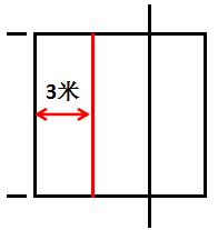 测试方法:考生在发球区内上手发球,连续发10个球,最后3个球必须发在后场区(端线往场区3米区域内)。每发一个有效球得1分,共10分。后场区见下图)